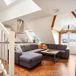 Large Seafront Penthouse With Four Bedrooms! ferielejlighed ligger i centrum af Bergen og har et samlet areal på 100 m^2. Værelserne har et skrivebord, et opholdsområde og tv, mens et fuldt udstyret køkken er udstyret med et køleskab, en ovn og køkkenudstyr.